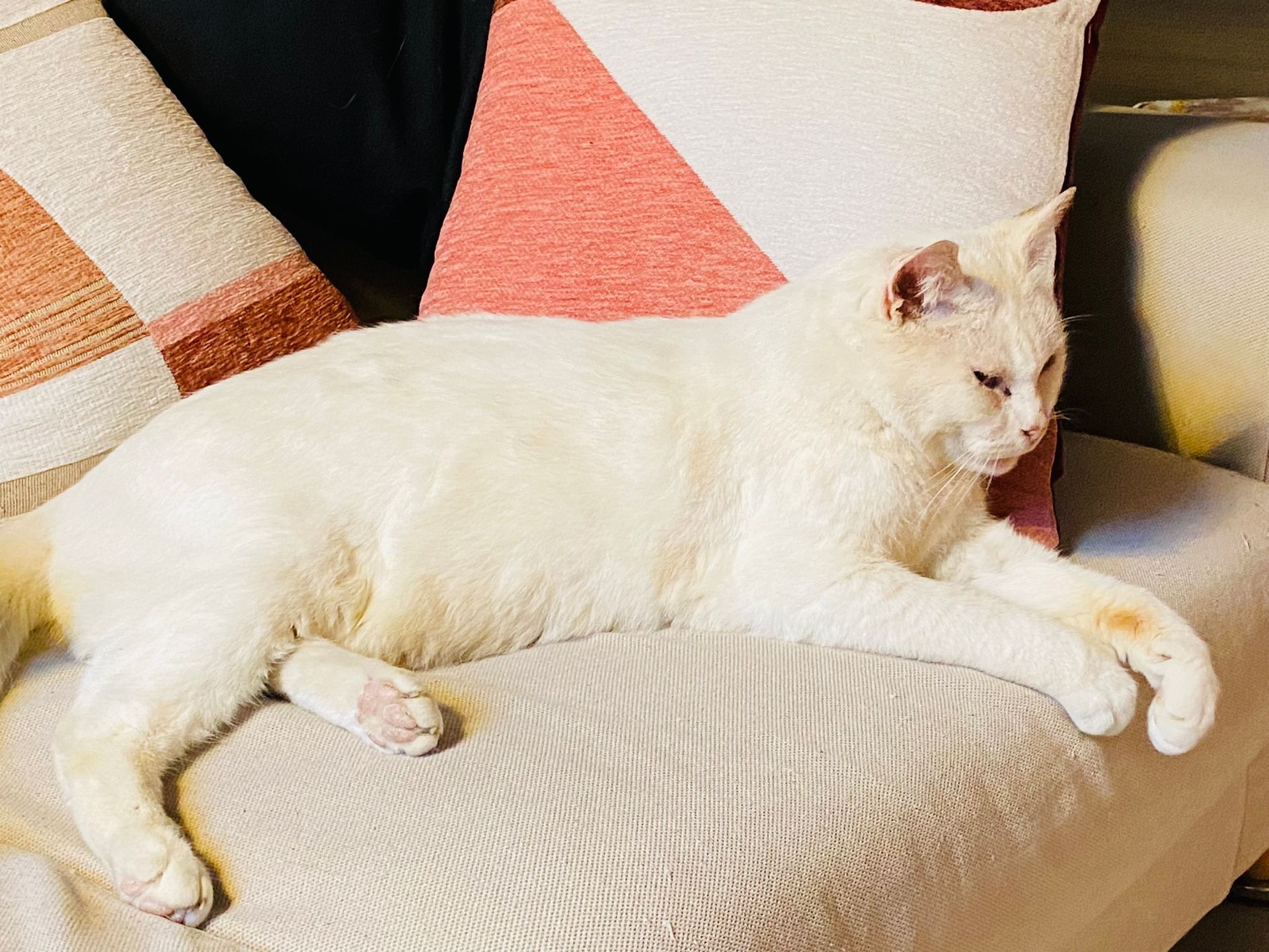 Leo quindi aveva bisogno di cure, un riparo che lo tenesse al caldo nei mesi freddi, possibilmente al sicuro e lontano dal sole...visto che come tutti i mici bianchi rischiava malattie della pelle.